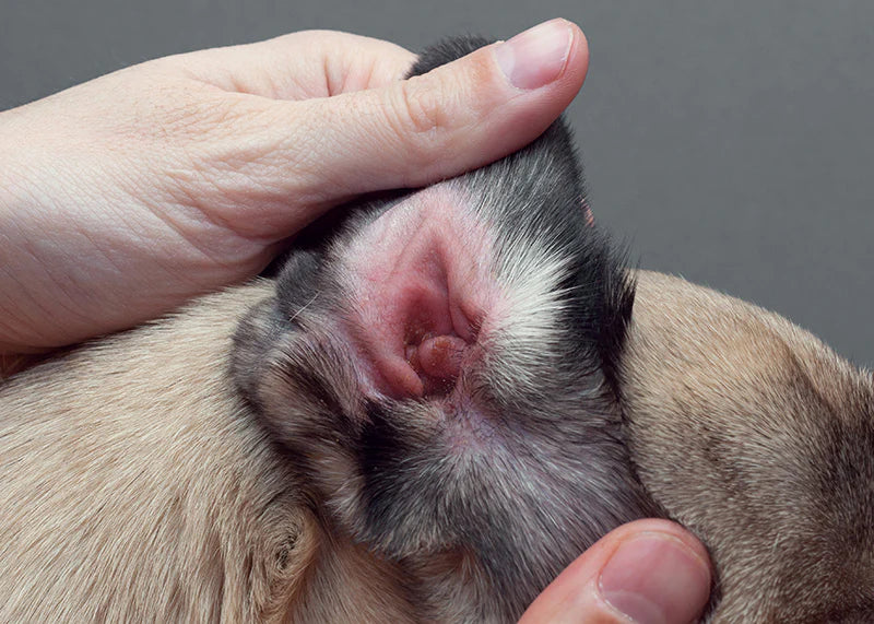 Redness is a sign of inflammation, which is your dog’s body’s way of signaling that something is wrong–it’s also one of the easiest symptoms for a pet parent to spot! Redness inside the flap of your dog’s ear or around the ear canal is a clear sign of irritation and potentially infection.