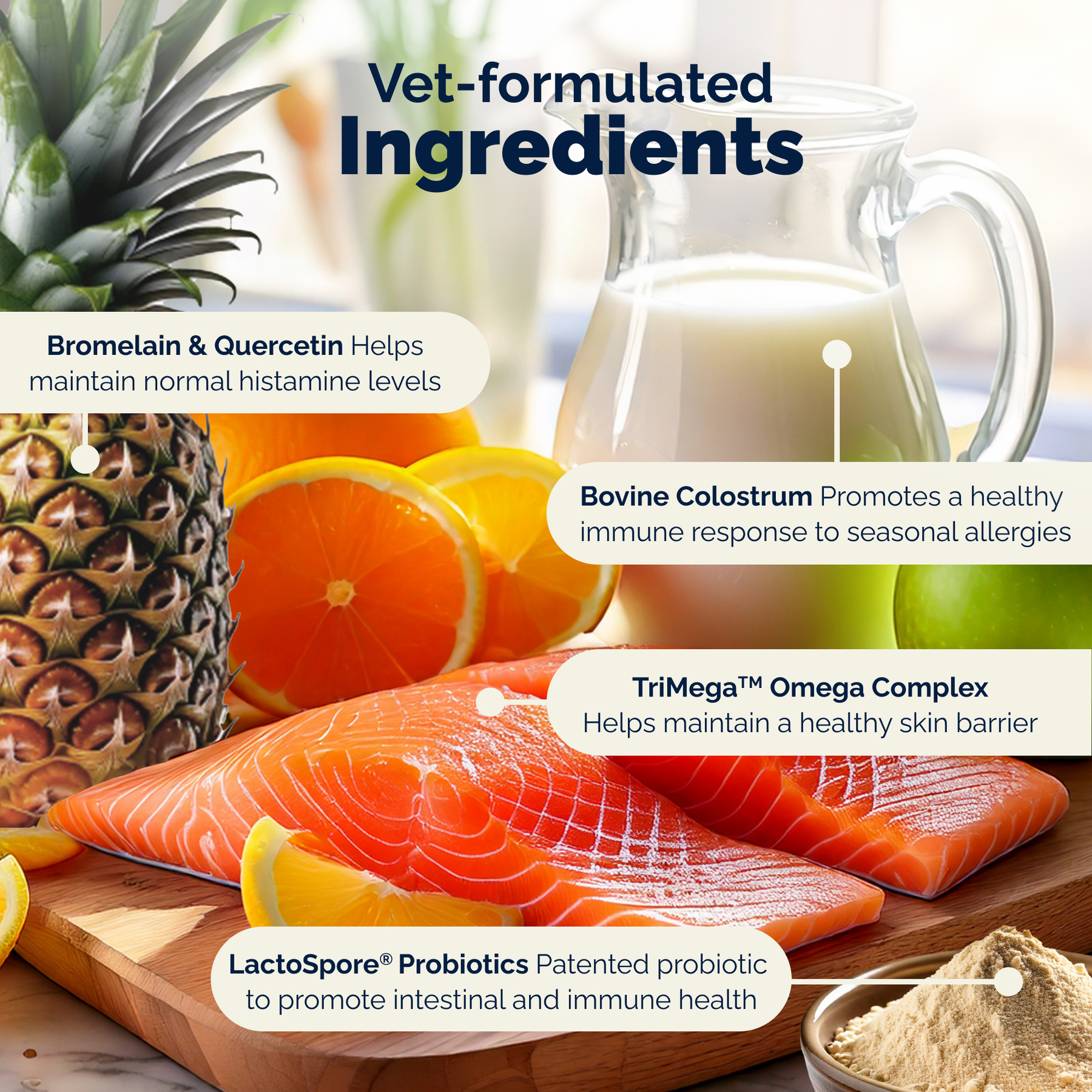 Supports a healthy immune response to seasonal allergens. Help to provide relief for your dog's itchy skin and seasonal allergies.