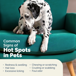 Treats dogs' red, inflamed hot spots on the head, legs, & more