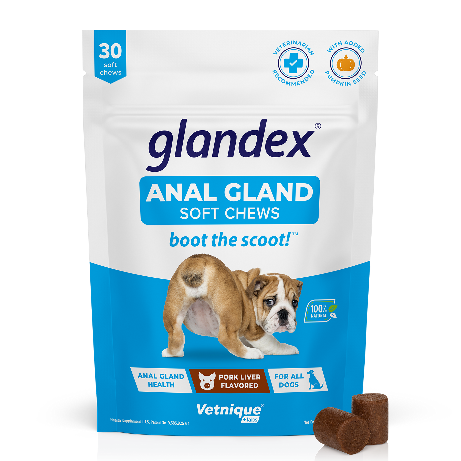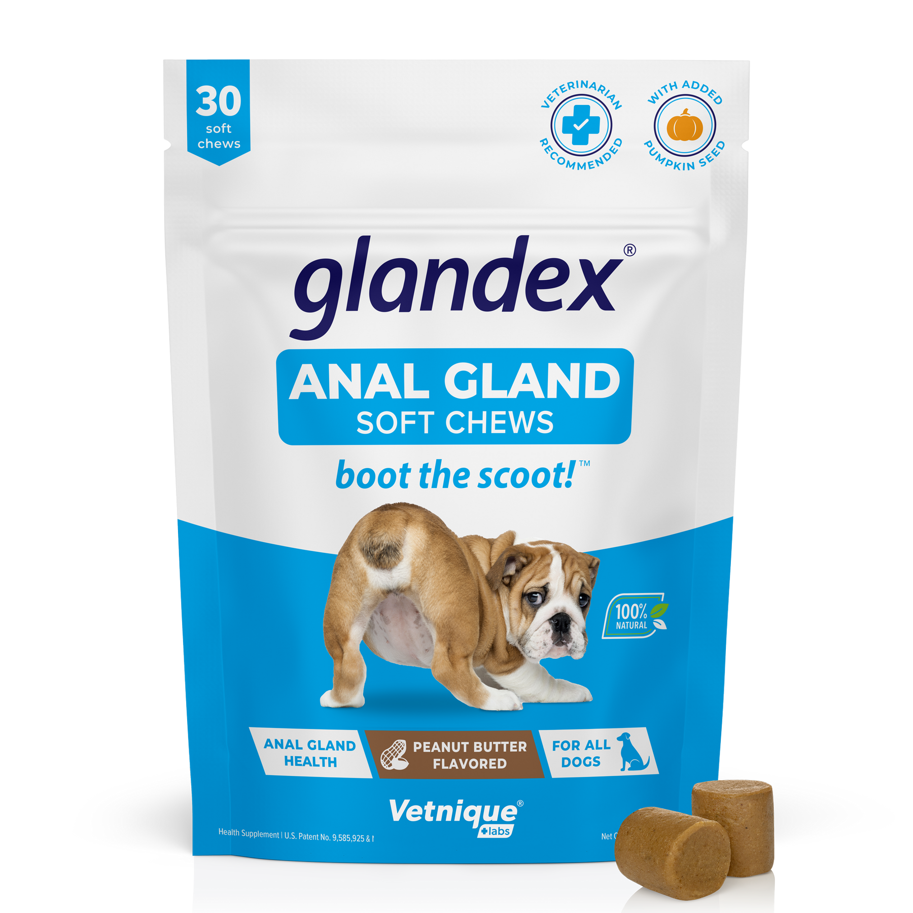 Glandex® was created by veterinarians specifically to help support anal gland function in dogs and cats. Glandex's patented formula contains a unique fiber blend, omega fatty acids, probiotics, and digestive enzymes to support digestion, seasonal allergies, and enhance the immune response. Our Glandex® Supplements come in both soft chews and powders with a variety of flavors that your pet will love. Give the recommended amount daily based on the weight of your pet. It's amazing what a little chew can do!®