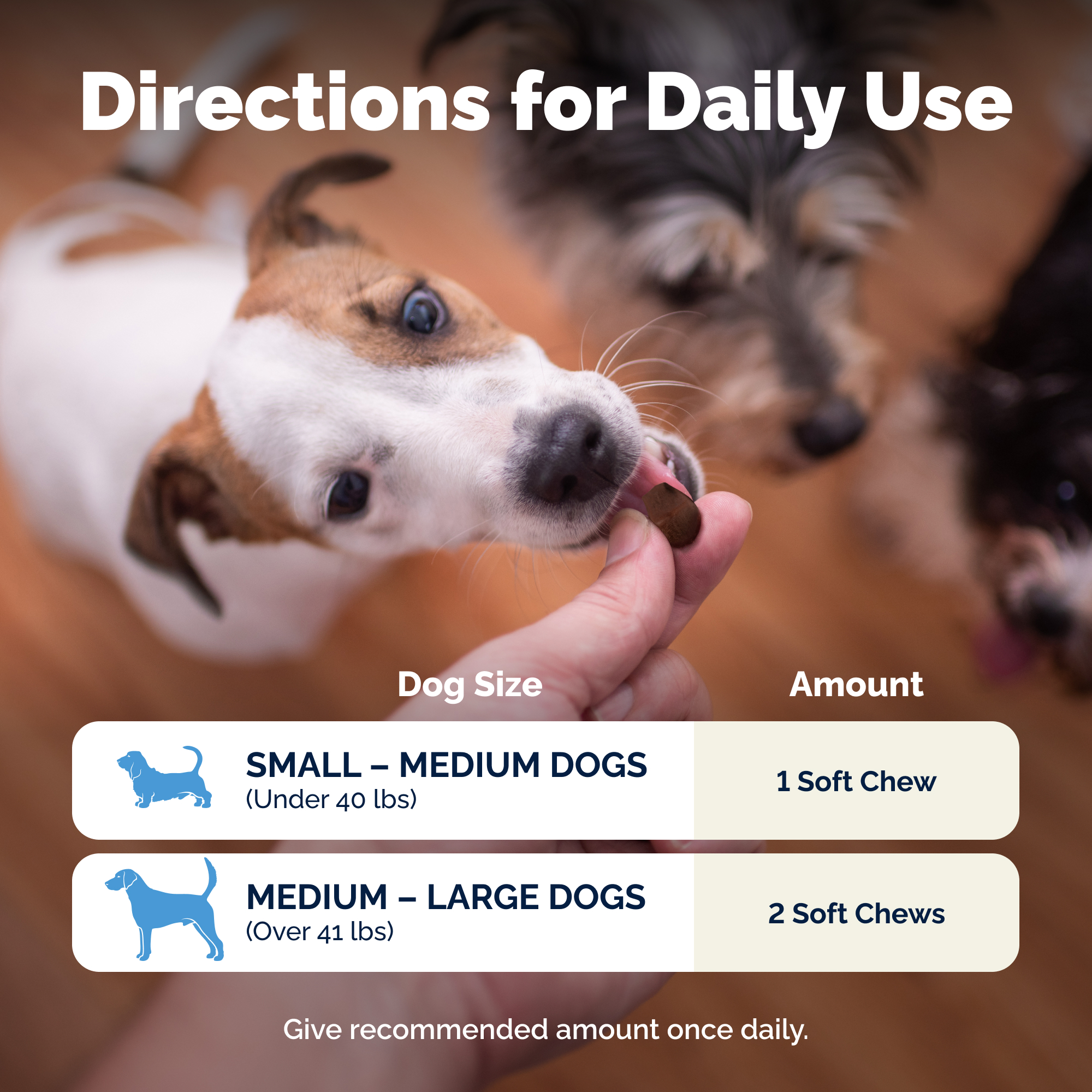 Dogs under 40 lbs 1 chew 30 Servings 60 Servings