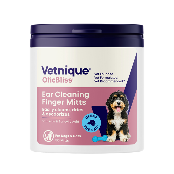 We have a variety of ear wipes to suit your dog’s ear anatomy (and options for cats, too). The Oticbliss Advanced Cleaning Ear Wipe is for extra-small ears. The Oticbliss Cleaning & Drying Ear Finger Mitt is suitable for most ears. The Advanced Cleaning XL Ear Wipe is for extra-large ears.
