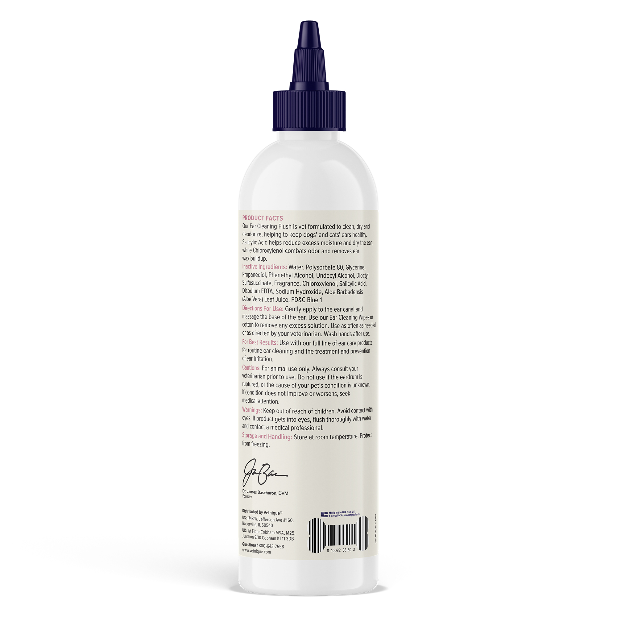 Our Advanced Cleaning Ear Flush for dogs helps dry the ears, dislodge ear wax buildup, and deodorize the ears. Our Anti-Bacterial & Anti-Fungal Medicated Ear Flush for dogs helps target fungal and bacterial growth linked to ear infections in dogs.